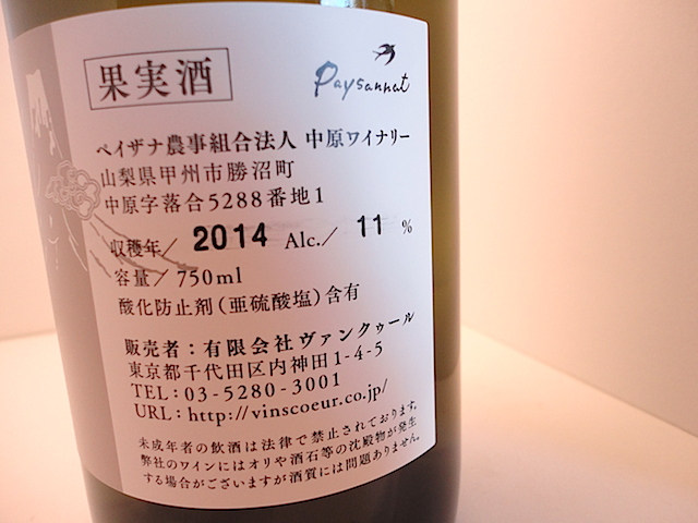 2014年はサビ病の被害が大きかった年で、サビ病に弱いデラウエアにとっては難しかった年。それでもワインはとてもまとまりがあり、球体感さえ感じる。香りは柑橘ではなく、ネクタリン等の芳醇な香り。味わいはフレッシュでわずかに甘みを感じる。全く硬さを感じさせない豊かな酸と、アフターに残る心地よい苦みが全体をまとめ上げる。